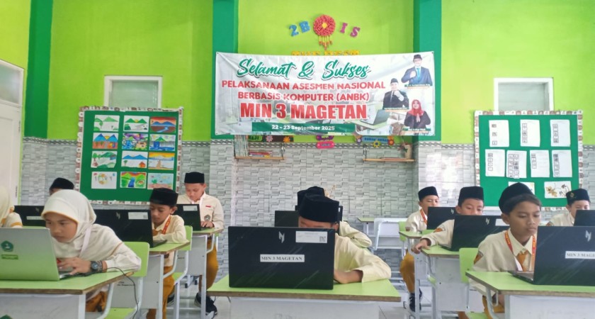 Magetan, 24 September 2025 – Madrasah Ibtidaiyah Negeri (MIN) 3 Magetan berhasil menyelenggarakan Asesmen Nasional Berbasis Komputer (ANBK) tahun 2025 dengan lancar dan sukses. Kegiatan yang dilaksanakan selama dua hari, Selasa dan Rabu, 23–24 September 2025, ini diikuti oleh 30 peserta didik kelas V yang terpilih secara acak oleh Kementerian.